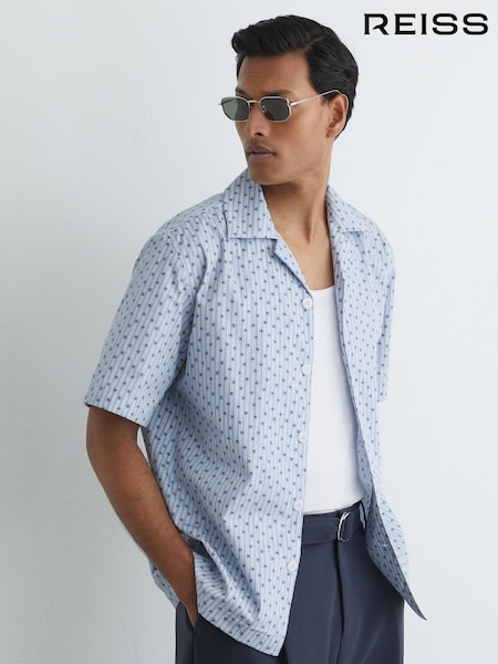 Reiss Soft Blue Sisqo Cotton Medallion-Print Cuban-Collar Shirt