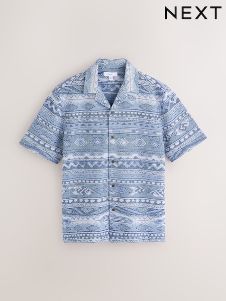 Reiss White Solano Textured Motif-Print Cuban-Collar Shirt