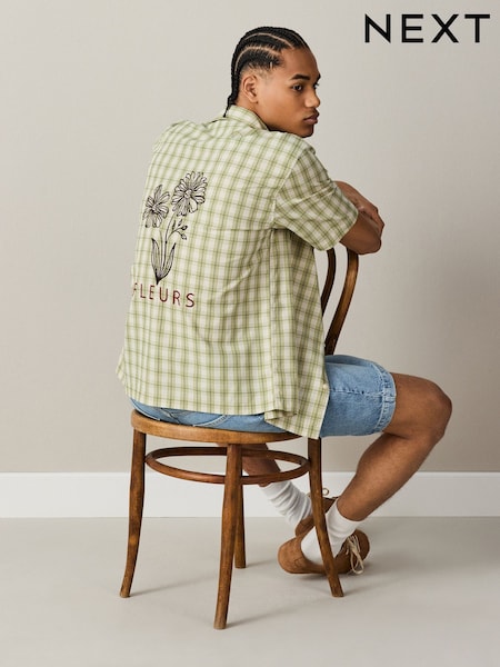 Brown Cotton Linen Printed Short Sleeve Shirt
