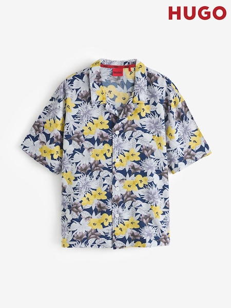 HUGO Yellow Relaxed Fit Camp Collar Beach Shirt