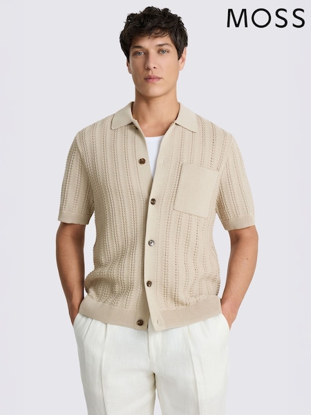 MOSS Neutral Chevron Pointelle Knitted Shirt