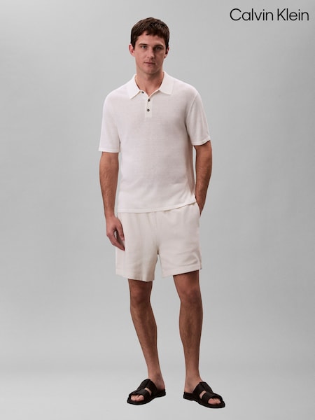 Calvin Klein Cream Cotton Blend Tailored Shorts
