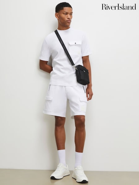 River Island White Regular Fit Waffle Cargo Shorts