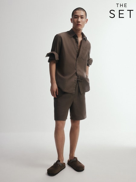 The Set 2 Pack Linen Cotton Relaxed Fit Pull On Shorts Black/Brown
