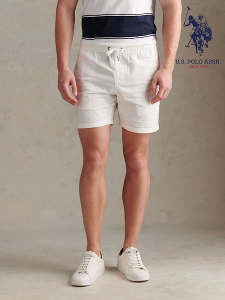 U.S. Polo Assn. White Mens Linen Blend Deck Shorts