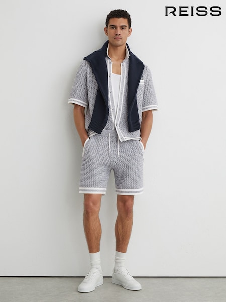 Reiss Navy Beale Cotton Crochet Drawstring Shorts