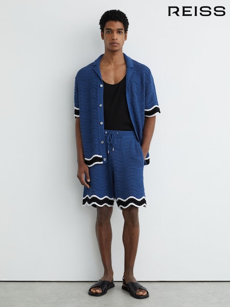 Reiss Blue Helios Cotton-Blend Wave-Knit Tipped Shorts