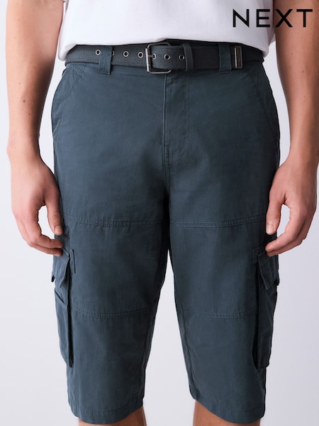 Navy Long Length Belted Cargo Shorts