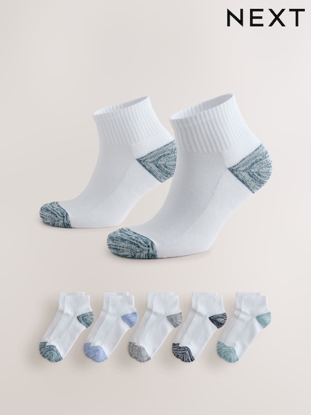 White Heel-Toe 5 Pack Cushioned Mid Trainer Socks