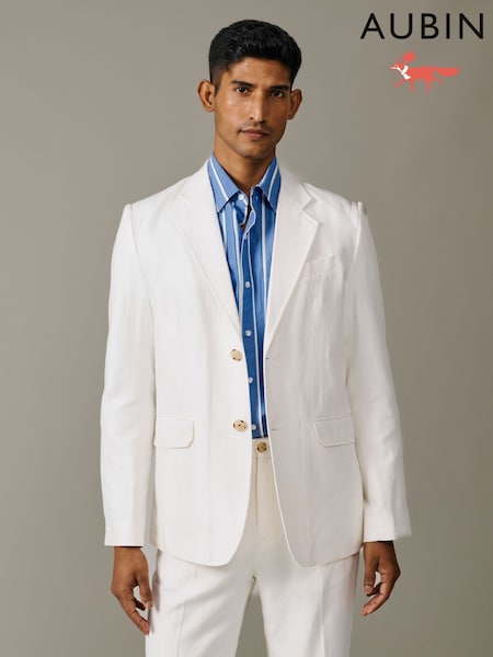 Reiss White Atlantic Linen-Twill Single-Breasted Tailored-Fit Blazer