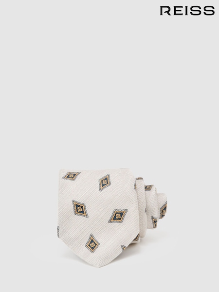 Reiss Light Oatmeal Brown Decio Silk Diamond Medallion-Print Tie