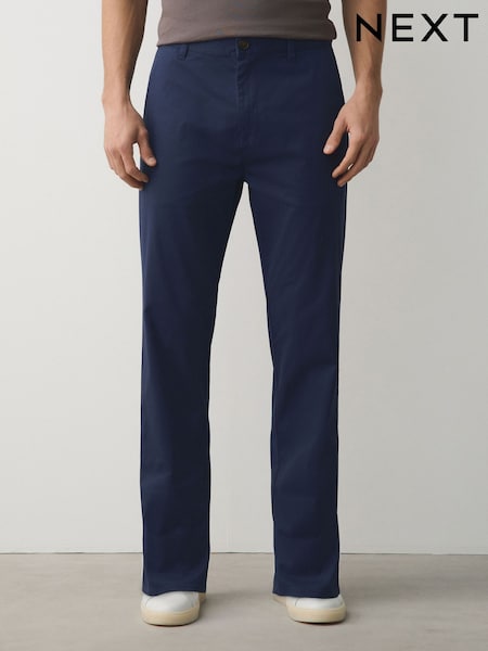 Blue Straight Fit Cotton Rich Stretch Chinos