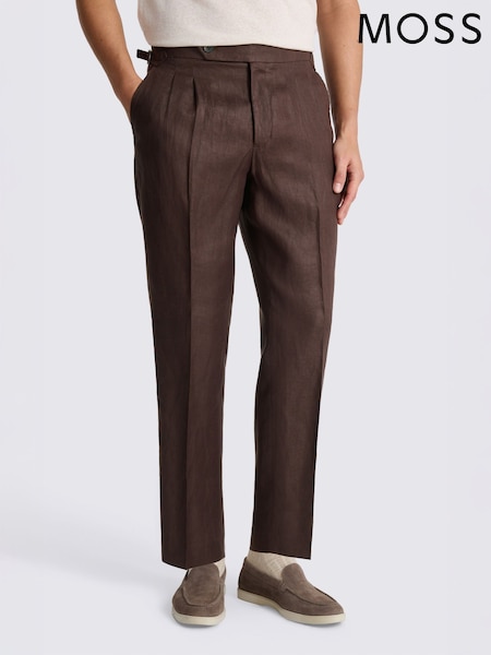 MOSS Brown Linen Pleated Trousers