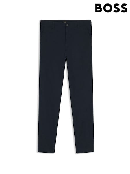 Navy Blue Elasticated Waist Textured Linen Blend Trousers