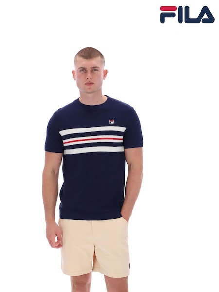 Fila Blue Gerardomesh Stripe Knitted T-Shirt