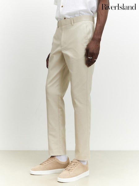 River Island Cream Slim Fit Chino Trousers