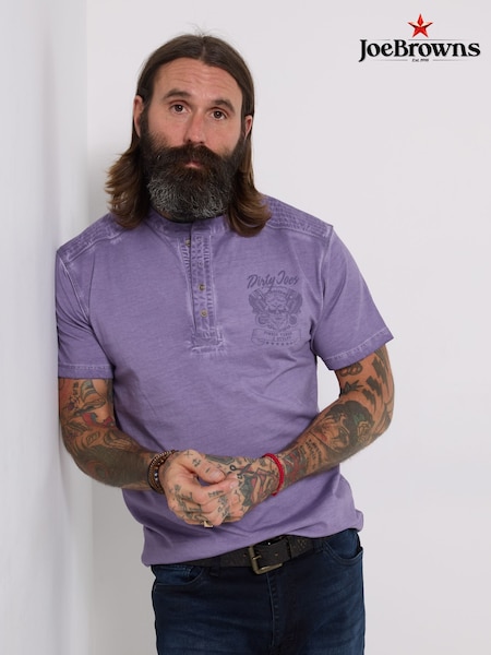 Joe Browns Purple Washed and Worn Henley T-Shirt