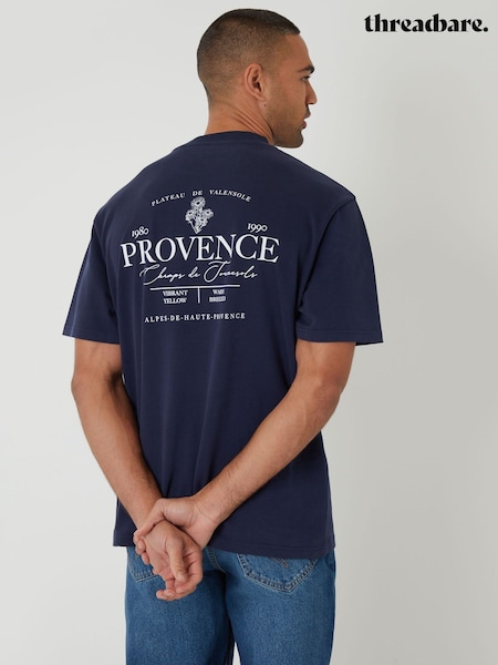 Threadbare Blue Graphic Cotton Ringer T-Shirt