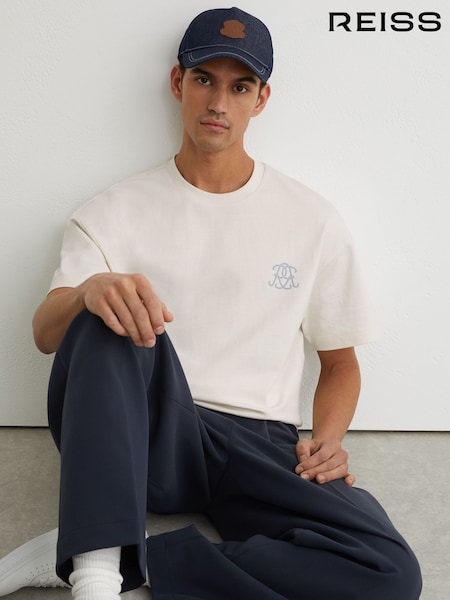 Reiss White Rainer Monogram Embroidered Relaxed-Fit T-Shirt