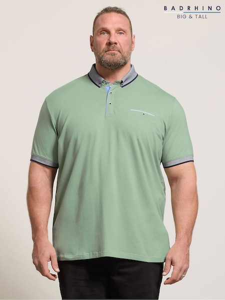 BadRhino Big & Tall Green Chambray Pocket Polo Shirt