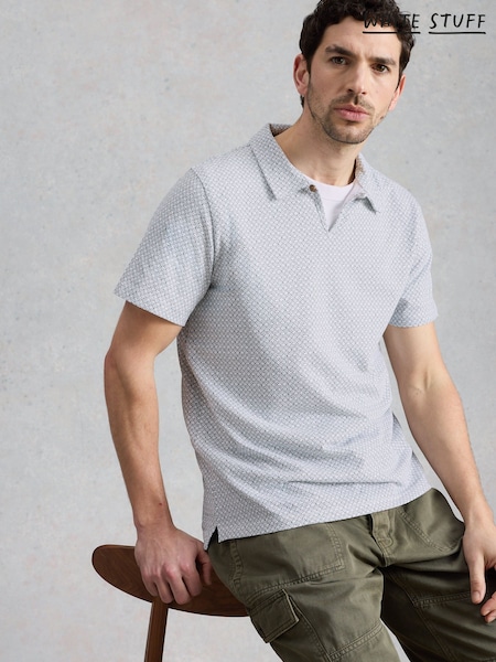 White Stuff Green Geo Printed Polo Shirt
