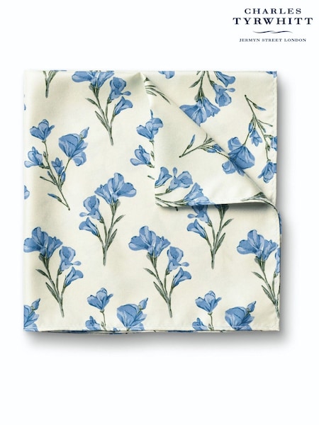 Charles Tyrwhitt Off White Silk Floral Print Pocket Square