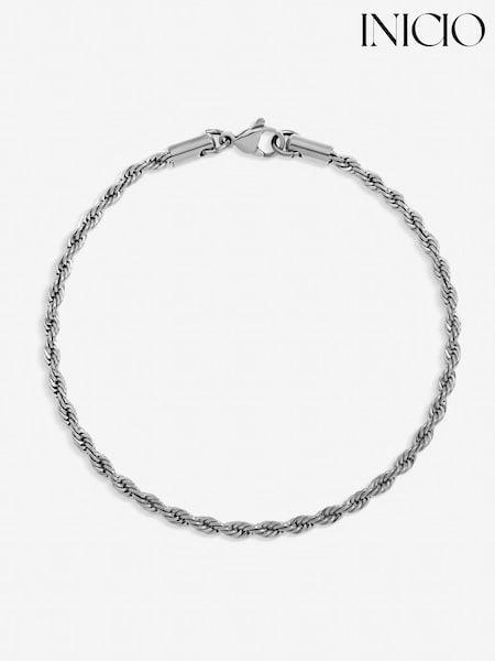 Inicio Silver Tone Steel Waterproof Twist Rope Bracelet