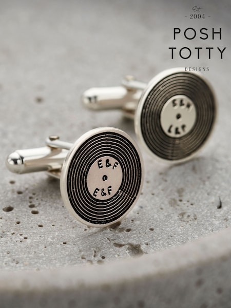 Personalised Silver Vinyl Record Cufflinks By Posh Totty Designs
