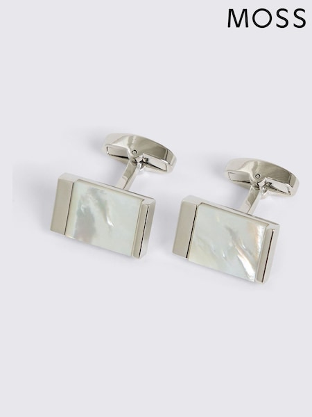 MOSS Grey Mother of Pearl Rectangle Cufflinks