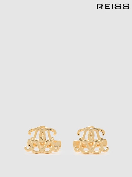 Reiss Gold Tone Digby Inlaid Round Ridge Cufflinks