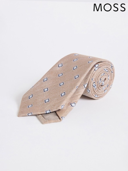 MOSS Cream Medallion Silk & Linen Tie