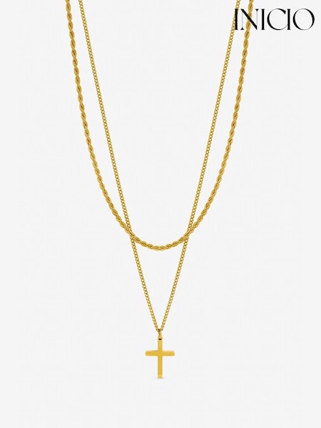 Inicio Gold Tone Waterproof Double row Cross Necklace