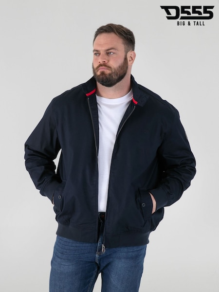 D555 Blue KENT-D555 Cotton Harrington Jacket with Ribbed Hem and Cuffs