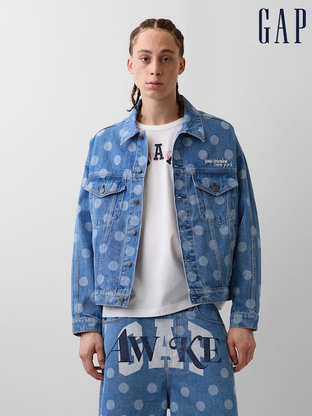 Gap x Awake NY Medium Wash Oversized Polka Dot Icon Denim Jacket