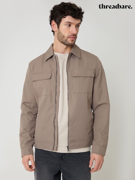 Threadbare Brown Showerproof Lightweight Zip Up Jacket With Collar