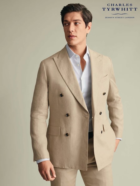 Charles Tyrwhitt Natural Double Breasted Linen Suit Jacket