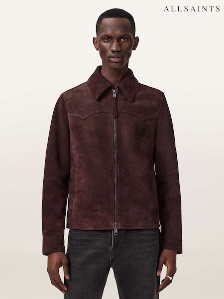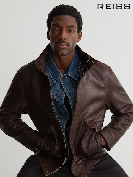 Reiss Burgundy Slarten Grained-Leather Zip-Through Jacket