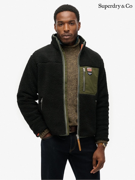 Superdry Black Vintage Retro Borg Fleece Jacket