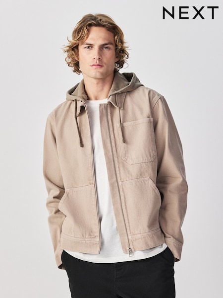 FatFace Washed Black Garment Dye Worker Cotton Jacket