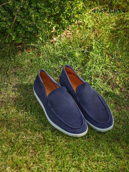 Hackett Blue Martin Plain Suede Loafer Shoes
