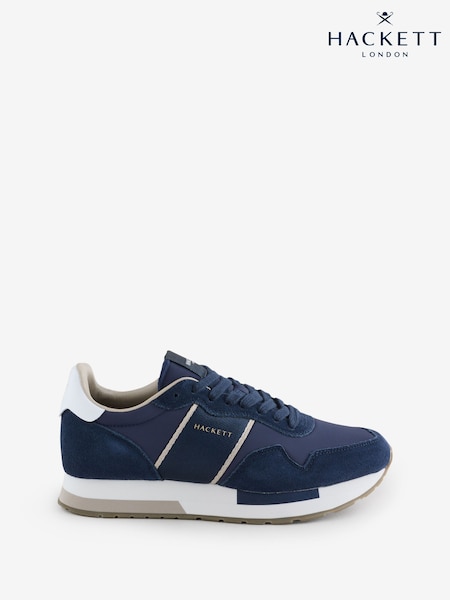 Hackett Blue Keston Symbol Leather And Suede Trainers