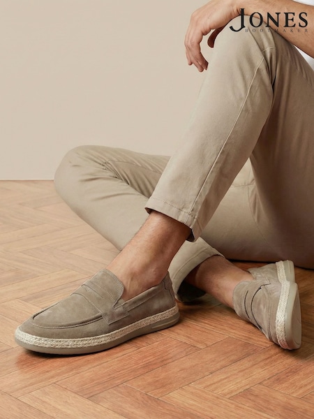 Jones Bootmaker Taupe Suede Redhill Leather Casual Slip-On Shoes
