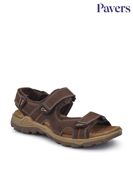 Pavers Brown Leather Touch-Fastening Sandals