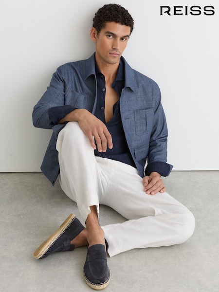 Reiss Airforce Blue Capri Suede Penny Loafer Espadrilles