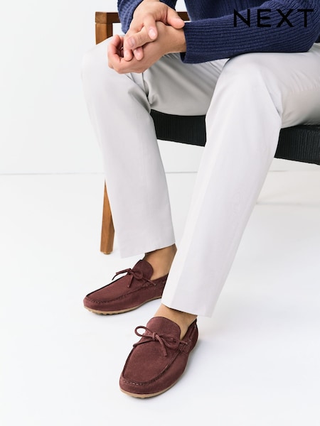 Mink Brown Bow Front Suede Driving Shoes