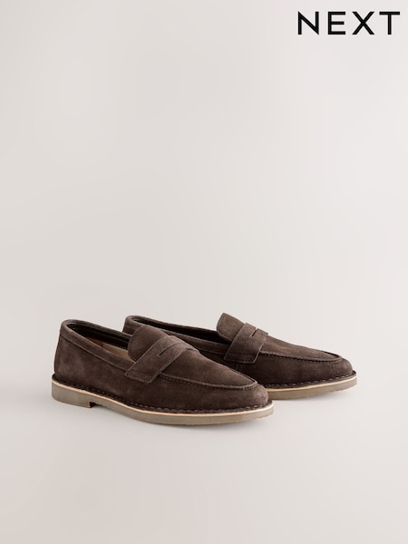 Stone Standard Fit Suede Penny Loafers