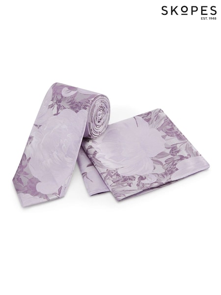 Skopes Purple Silk Floral Tie & Pocket Square Set