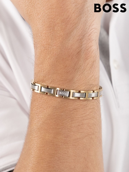 BOSS Black Gents Metal Link Essentials Two Tone Bracelet