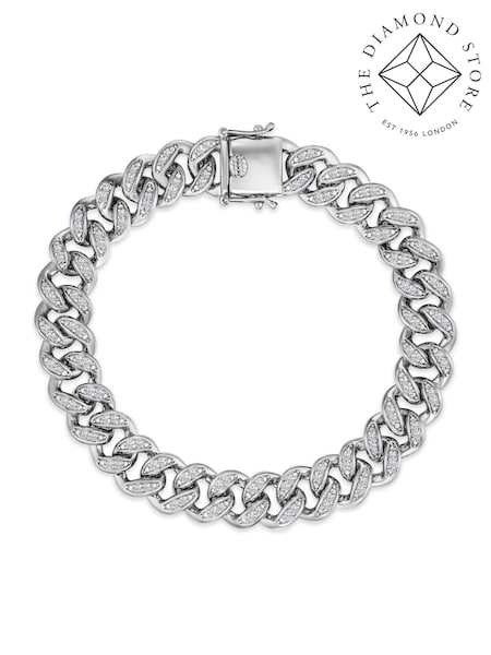 The Diamond Store Silver 8.25 Havana Cuban Men Lab Diamond Bracelet 1.20ct Cuban Lab Diamond Set in 925 Silver