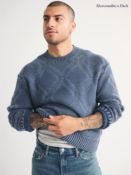 Abercrombie & Fitch Blue Oversized Cable Knit Crew Neck Jumper